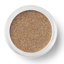 Next, sweep the highlight eyeshadow in True Gold across lids and up to the brow bone, then blend Saucy, a rich cinnamon color into the entire eye crease, extending slightly out past the lashes.